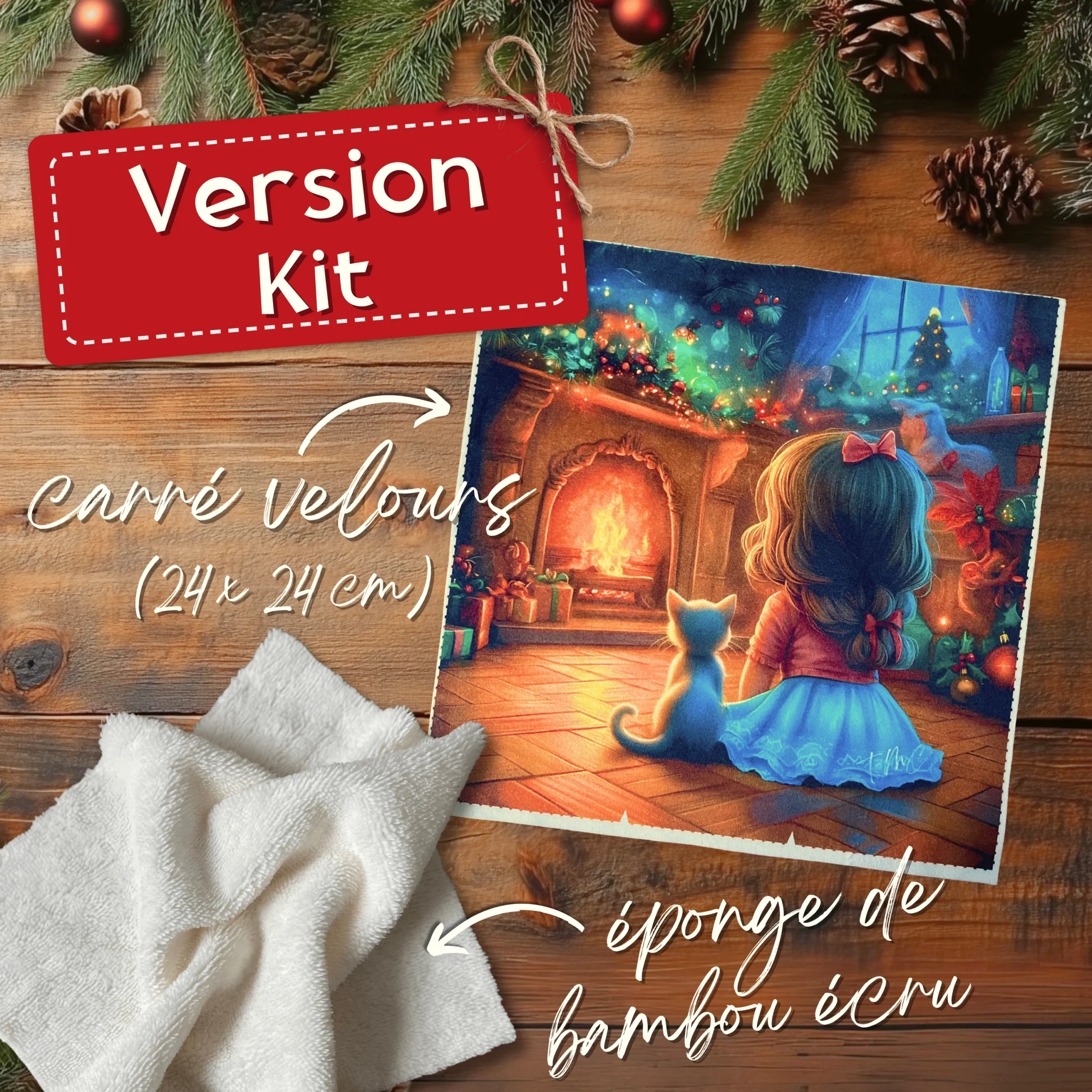Si vous choisissez la version kit, vous aurez, en plus de votre panneau velours, la face arrière en éponge de bambou écru.