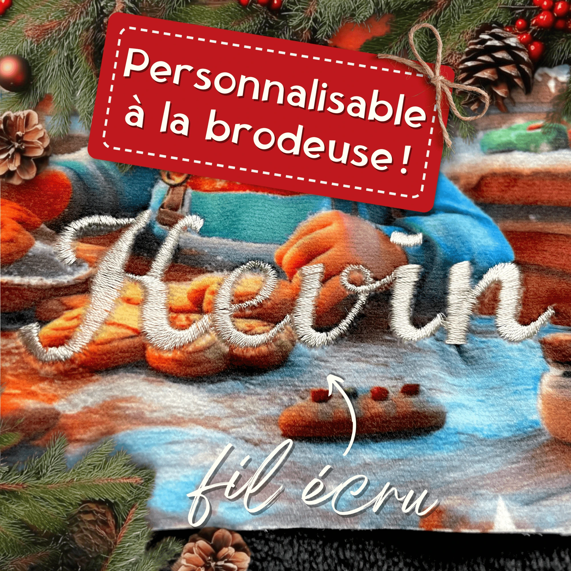 En tissu velours avec un imprimé de Noël, ce panneau est très doux et agréable au toucher.