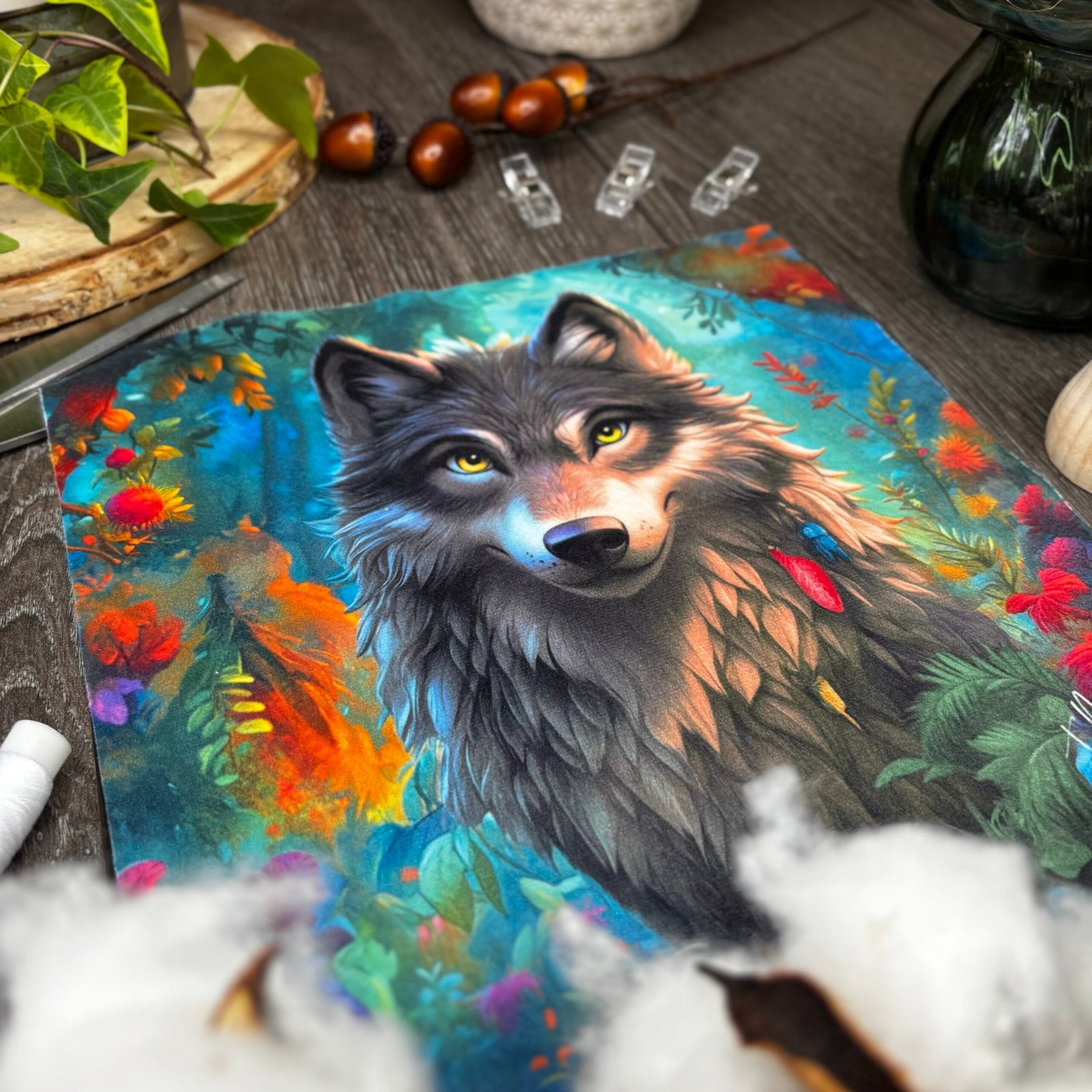 Coupon tissu Méchant Loup – Panneau 24 × 24 cm en velours doux OEKO-TEX