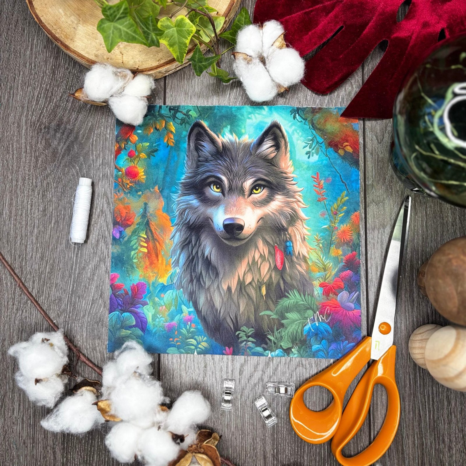 Ce coupon de 24 × 24 cm représente une illustration exclusive du méchant loup, issue de notre collection « Contes et Histoires ». C’est un panneau de tissu, avec un grand potentiel : il peut devenir une serviette, un appliqué, une trousse ou un carré de patchwork.
