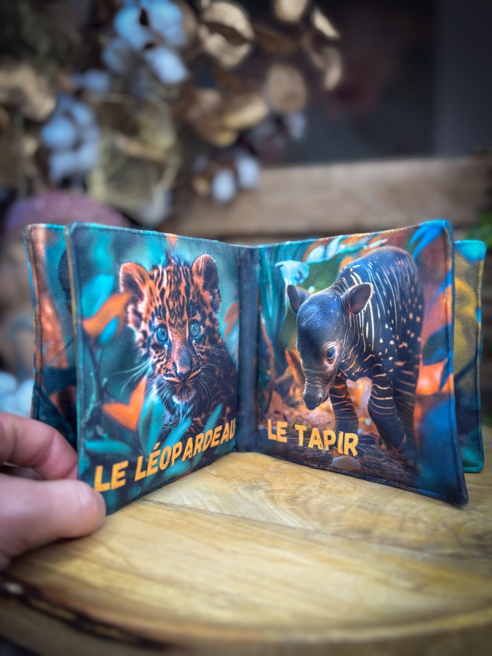 Imagier à coudre des animaux de la jungle – Kit couture bébé sensoriel en tissu velours