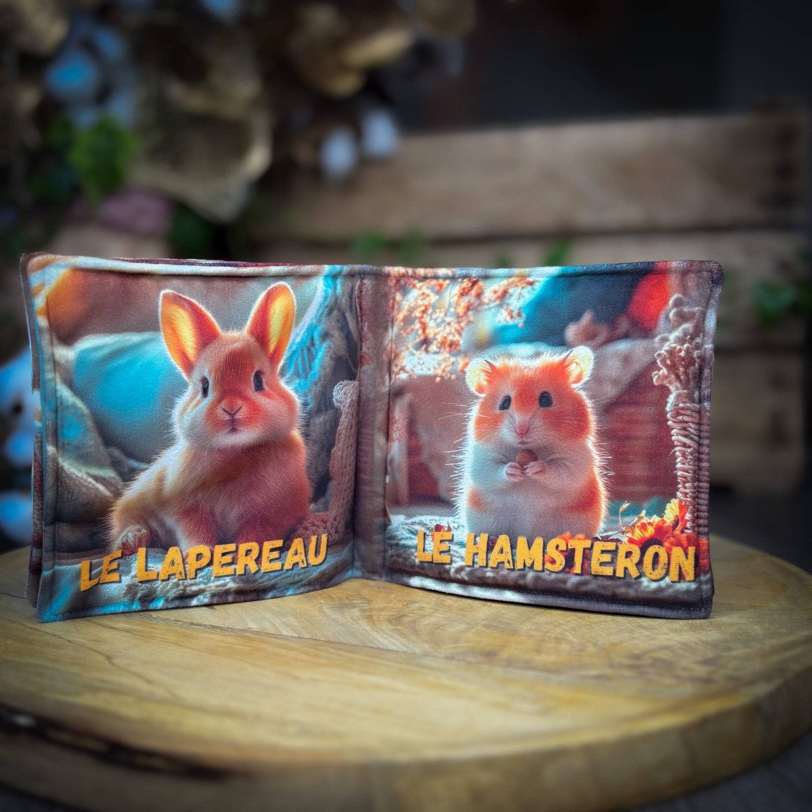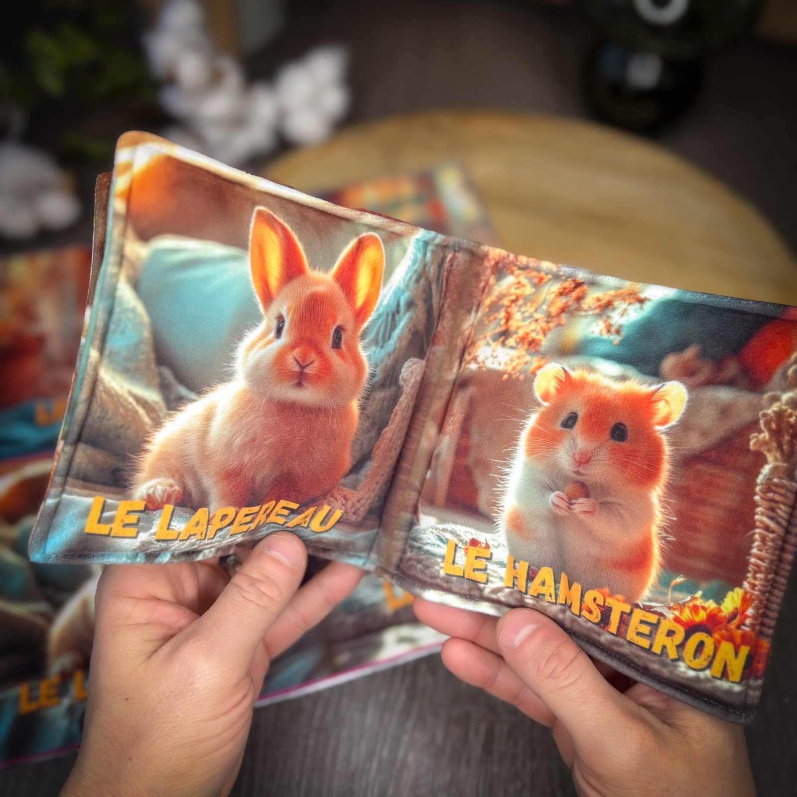 Les illustrations photo-réalistes mettent en scène les bébés animaux de la maison dans un style doux et poétique : lapereau, chiot, chaton et bien d'autres compagnons trop mignons.