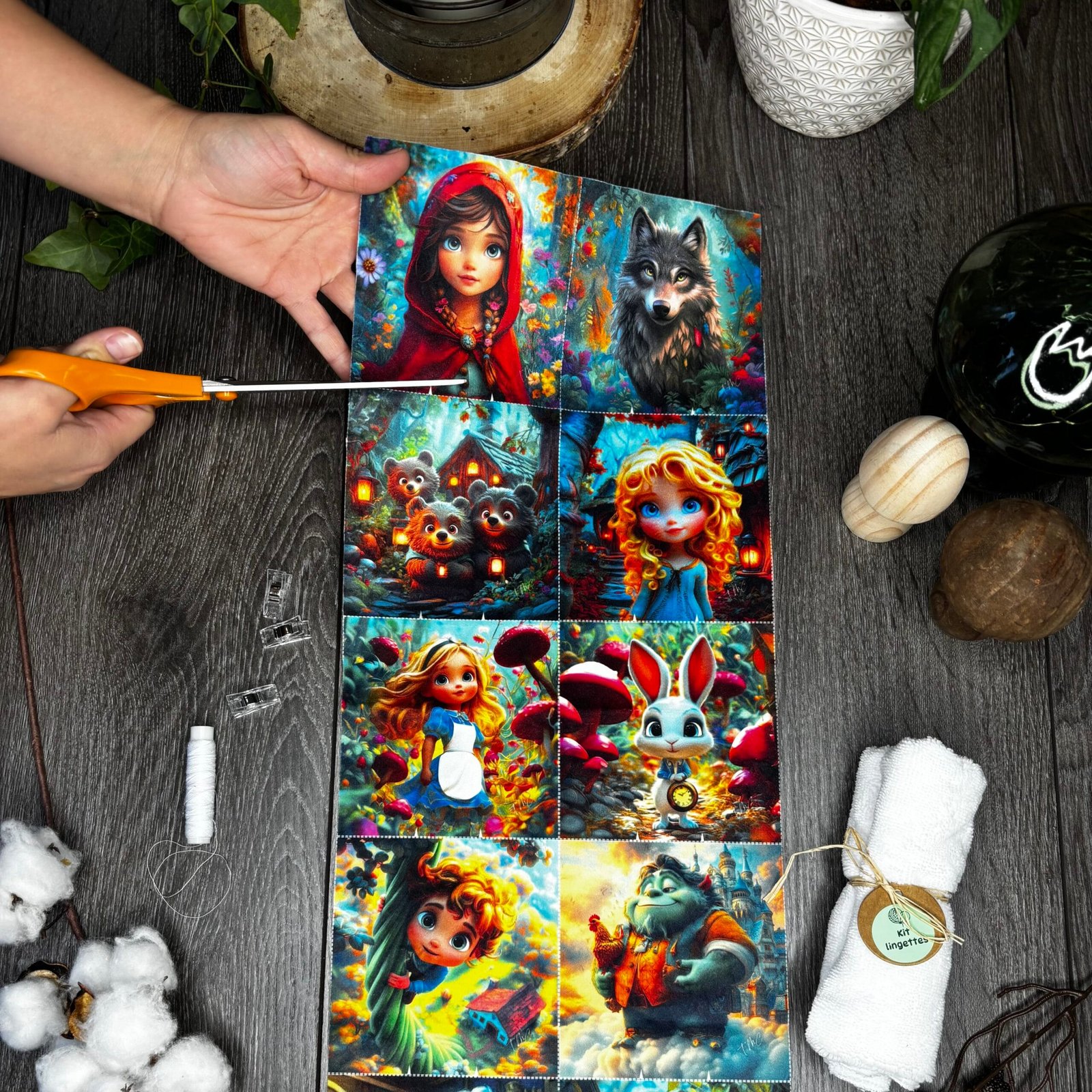 Panneau lingettes des contes traditionnels lavables en velours – 10 lingettes à coudre soi-même