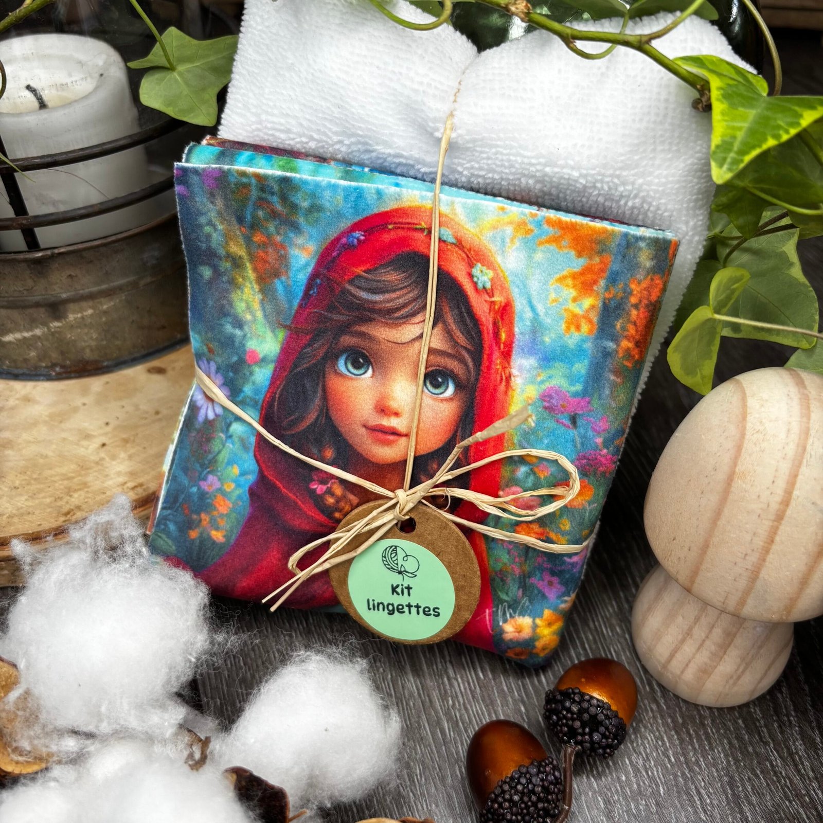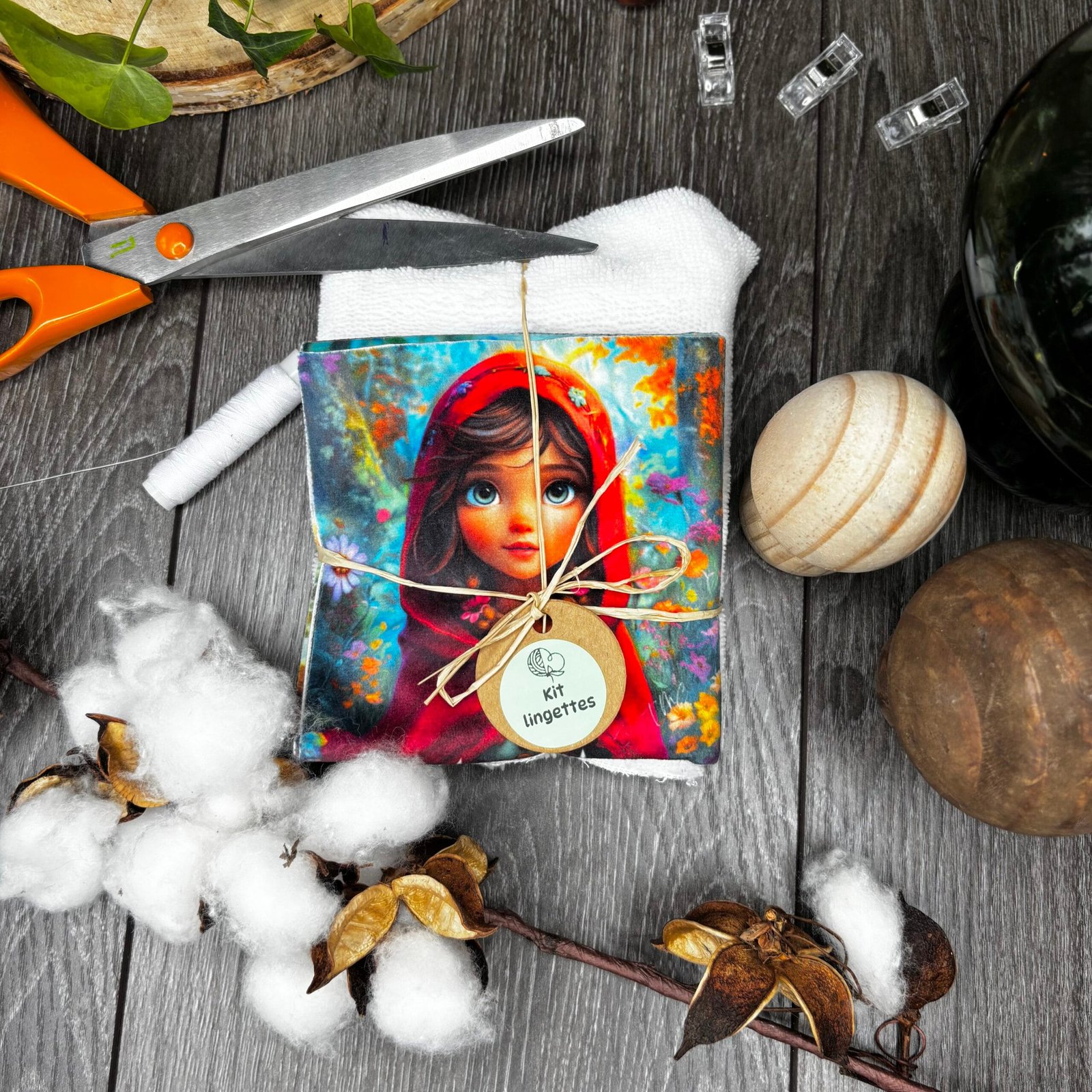 Avec ce panneau lingettes lavables Contes traditionnels, tu peux coudre 10 lingettes réutilisables en velours OEKO-TEX tout doux.