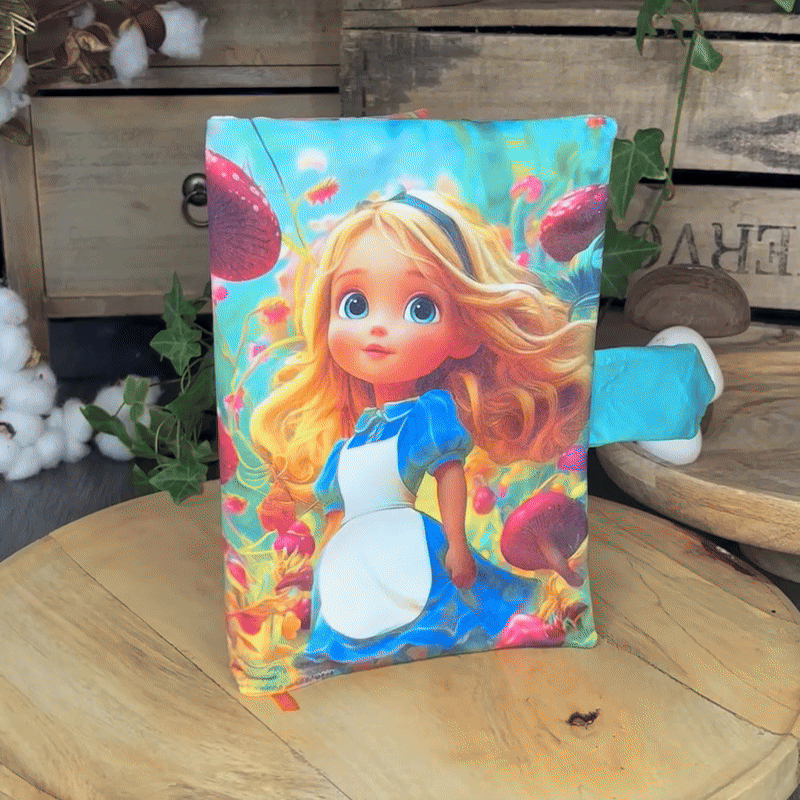 Entre dans le monde merveilleux d’Alice avec ce panneau en velours tout doux, conçu pour coudre toi-même un protège-cahier au format carnet de santé ou livre 15 × 22 cm.
