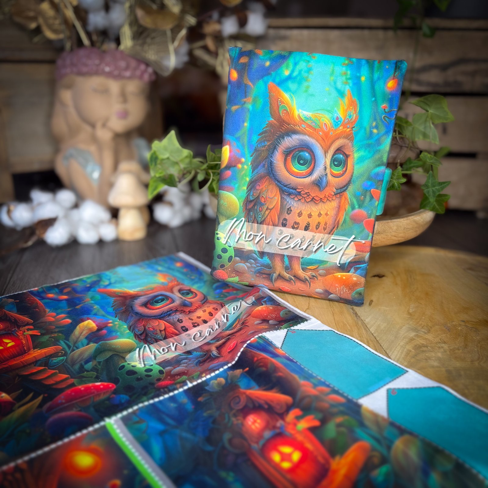 Craque pour la douceur et la poésie du petit hibou avec ce panneau en velours tout doux, idéal pour coudre un protège-cahier au format carnet de santé ou livre 15 × 22 cm.