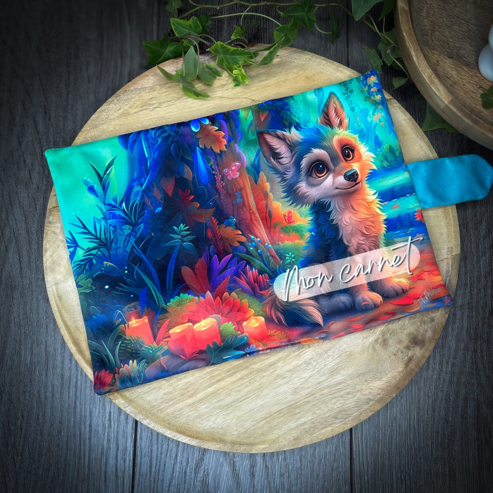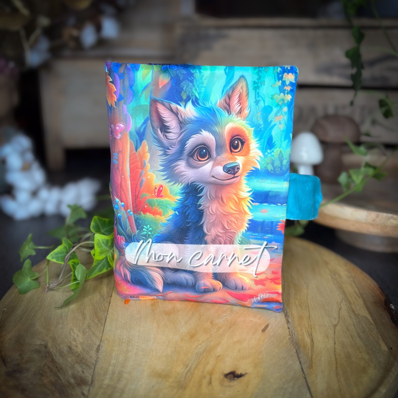 Retrouve le charme sauvage du petit loup avec ce panneau en velours tout doux, conçu pour coudre un protège-cahier au format carnet de santé ou livre 15 × 22 cm.